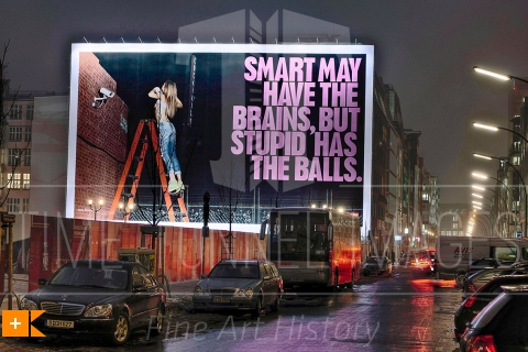 Die Diskussion um die sich ständig verändernden kommerziellen Erlebnisangebote und Bildwelten rund um den Checkpoint Charlie wurde ganz besonders heftig um zwei Grundstücke an der nördlichen Seite der Zimmerstraße / Ecke Friedrichstraße geführt. Die Nutzung dieses Areals, das vor 1990 zu den ostdeutschen Grenzanlagen gegenüber des amerikanischen Checkpoint Charlie gehörte, war und ist wegen ungeklärter Eigentumsverhältnisse und Restitutionsansprüche, wechselnder Investorenplanspiele und einer unklaren politischen Haltung des Berliner Senats unklar. Insbesondere in den Jahren nach der Fußballweltmeisterschaft 2006, als Deutschland und insbesondere Berlin als Gastgeberland von der Welt völlig neu erlebt wurde und sich ungeahnte Tourismusströme mit der entsprechenden Infrastruktur nach Berlin ergossen, wurde die Erinnerungslandschaft rund um den Checkpoint Charlie, an dem zahlreiche der insgesamt 138 Maueropfer ihr Leben ließen, zum Erlebnispark. Um 2010 wurden Baustellen und insbesondere die Brandmauern, die an den umstrittenen Arealen rund am Checkpoint Charlie noch sichtbar sind, für großflächige Plakatwerbekampagnen genutzt. Besonders umstritten war im Januar 2010 zur Modemesse Bread & Butter die Anbringung eines 1.000 Quadratmeter großen Großplakates des Jeansherstellers Diesel aus der Kampagne „Be stupid“am Checkpoint Charlie, zum einen wegen der historischen Bedeutung des Ortes („Verhöhnung der Opfer“), zum anderen wegen des provokanten Inhalts der Anzeige selbst, eines Mädchens, das vor einer Überwachungskamera seine Brüste entblößt. Das Plakat war Teil einer Kampagne, die die Marketingabteilung des italienischen Modelabels mit der New Yorker Werbeagentur Anomaly entwickelt und weltweit gelauncht hatte. Darin wurden in zahlreichen Motiven der Gegensatz smart/ stupid fotografisch inszeniert und durch die Inversion der klassischen Konnotation der Begriffe eine provokante Botschaft formuliert: Smart critiques | Stupid creates; Smart may have the plans | But stupid has the stories; Smart may have the brains | But stupid has the balls ...